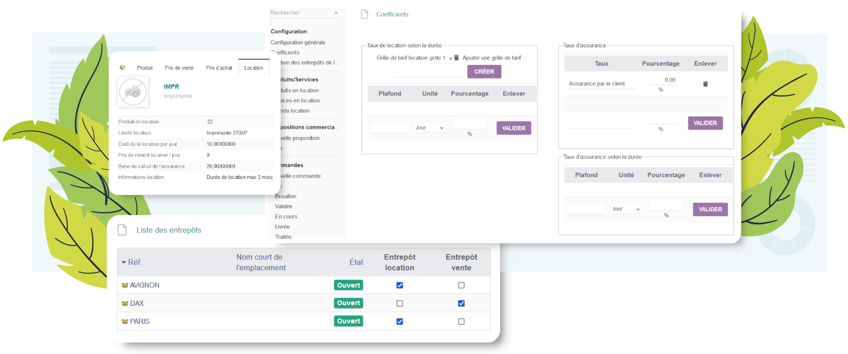 Gérez vos produits, vos taux de location, et même vos coefficients d’assurance.